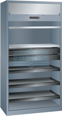 De vertikale rolluikkasten kunnen door de hoge legbordbelastingen van 60, 100 of zelfs 160-200 kg voor meer industriele toepassingen ingezet worden. Voor deze laatste categorie zijn dan ook schuifladen en uittrekbladen beschikbaar, waardoor bij plaatsing het toepassingsgebied aanmerkelijk groter is.
