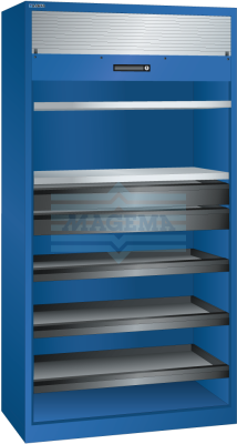 De vertikale rolluikkasten kunnen door de hoge legbordbelastingen van 60, 100 of zelfs 160-200 kg voor meer industriele toepassingen ingezet worden. Voor deze laatste categorie zijn dan ook schuifladen en uittrekbladen beschikbaar, waardoor bij plaatsing het toepassingsgebied aanmerkelijk groter is.