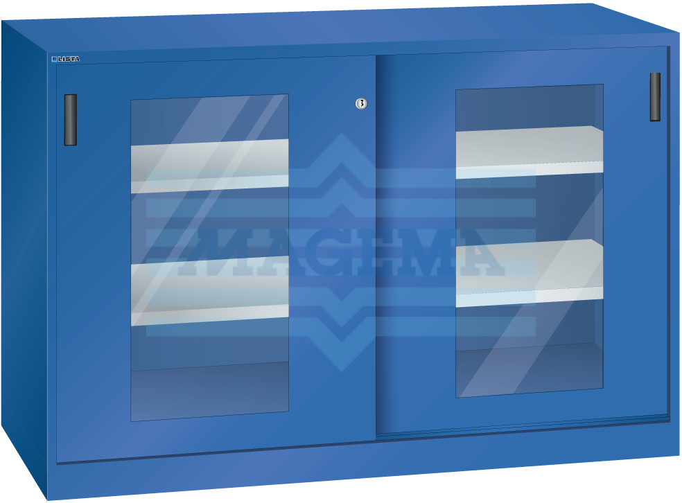 Zoals het gehele Lista programma plaatstalen kasten, zijn de schuifdeurkasten ook leverbaar in 12 standaard RAL kleuren en tegen een geringe meerprijs in 12 aanvullende RAL kleuren.