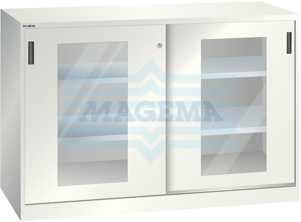 Zoals het gehele Lista programma plaatstalen kasten, zijn de schuifdeurkasten ook leverbaar in 12 standaard RAL kleuren en tegen een geringe meerprijs in 12 aanvullende RAL kleuren.