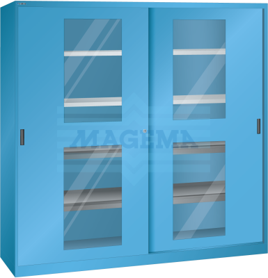 Zoals het gehele Lista programma plaatstalen kasten, zijn de schuifdeurkasten ook leverbaar in 12 standaard RAL kleuren en tegen een geringe meerprijs in 12 aanvullende RAL kleuren.