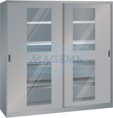 Zoals het gehele Lista programma plaatstalen kasten, zijn de schuifdeurkasten ook leverbaar in 12 standaard RAL kleuren en tegen een geringe meerprijs in 12 aanvullende RAL kleuren.