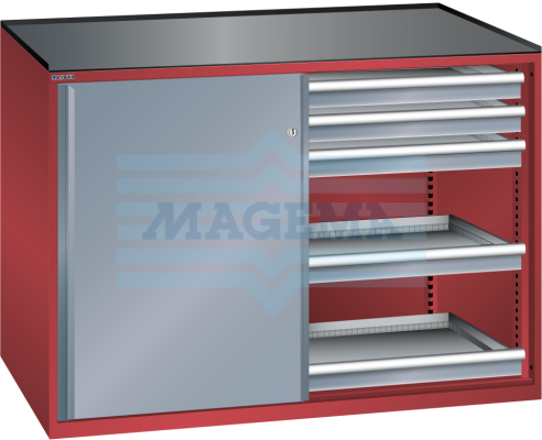 | Artikelnummer: 41-9313-036 | Artikelnummer fabrikant: 79.435.522 | Draagvermogen: 200 | Kleur kasthuis: Ral3003 (robijnrood) | Kleur laden: Ncs s 6502-b (metallic grijs) | Slotsysteem: Key lock | € 2.932,33 | Selecteren |