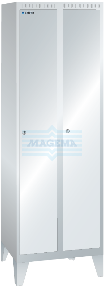 Het grote aanbod van uitvoeringen en afmetingen met 5 hoogte en 4 breedte maten, enkel of dubbeldeur, vlak of op voeten en de beschikbare accessoires, maakt de Lista garderobekast tot een veelzijdig toepasbaar, nette en veilige opslag.